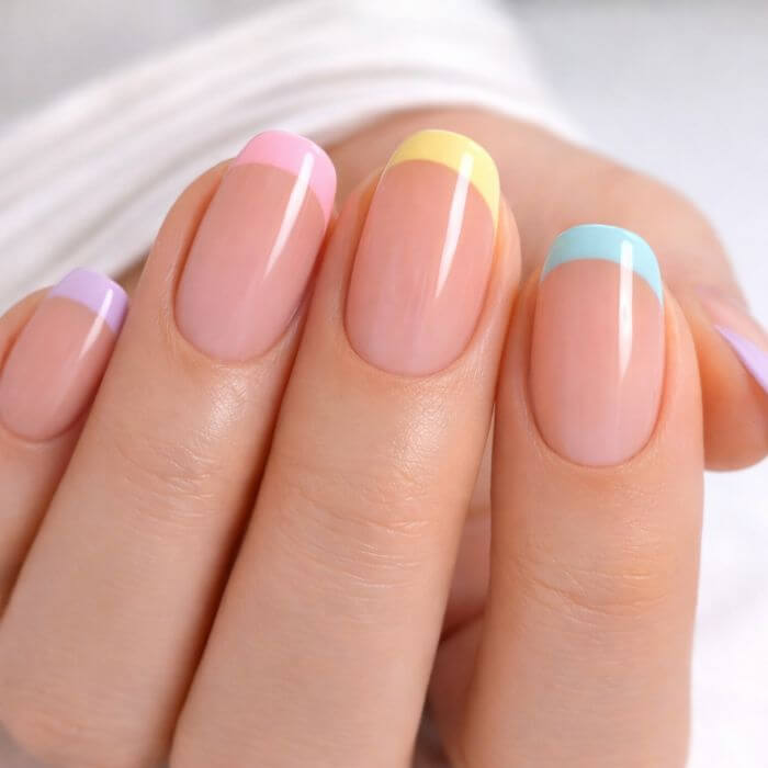 Chaque ongle affiche une couleur différente ou une combinaison de teintes. C’est le choix parfait pour un look fun, dynamique et estival. Vous pouvez rester dans une palette harmonieuse ou oser des contrastes marqués.