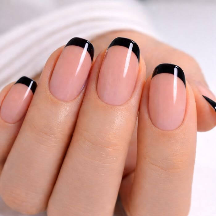 Alternative moderne au blanc, le noir apporte un style chic et affirmé. Associée à une base nude, elle crée un contraste élégant et contemporain.