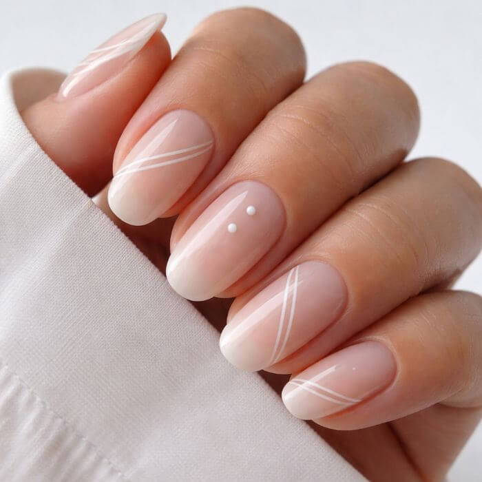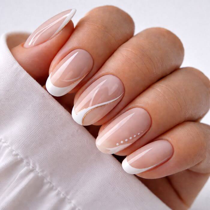 Pour un effet naturel et élégant, associez le blanc à une base nude ou rosée. Les détails blancs ressortent subtilement tout en conservant une apparence discrète.