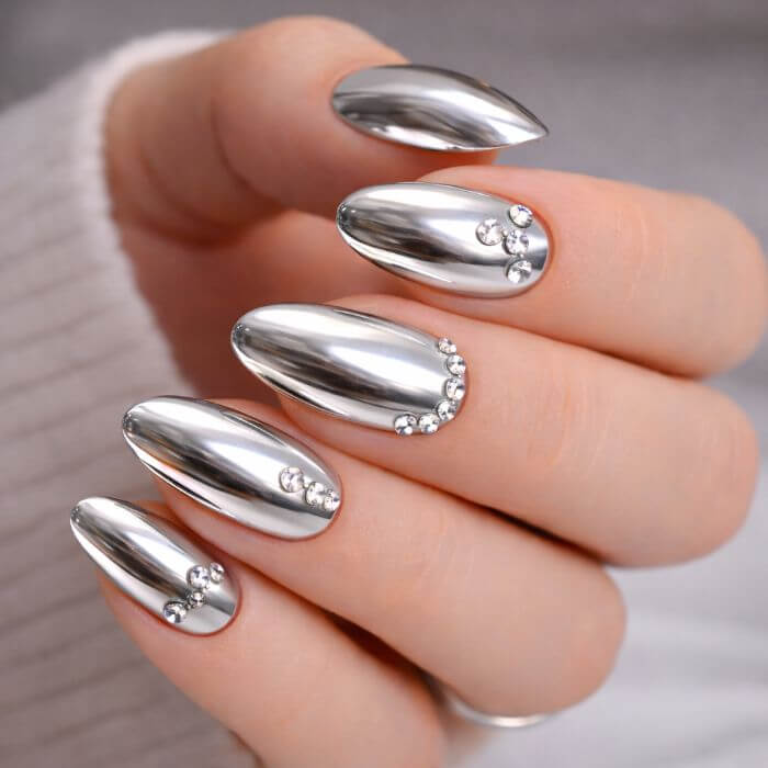Ajoutez des strass, des perles ou de petits bijoux pour sublimer votre nail art chromé.