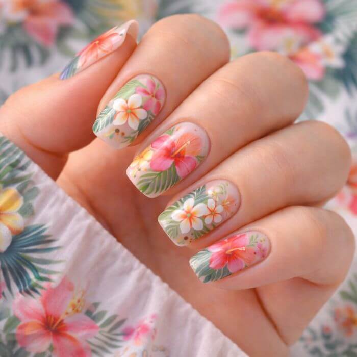 Nail art fleurs tropicales