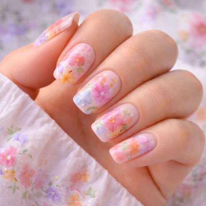 Nail art floral aquarelle