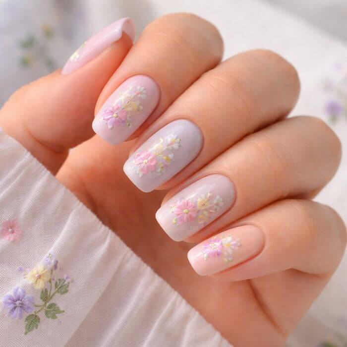Nail art floral pastel