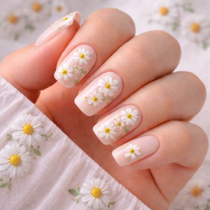 Nail art marguerites