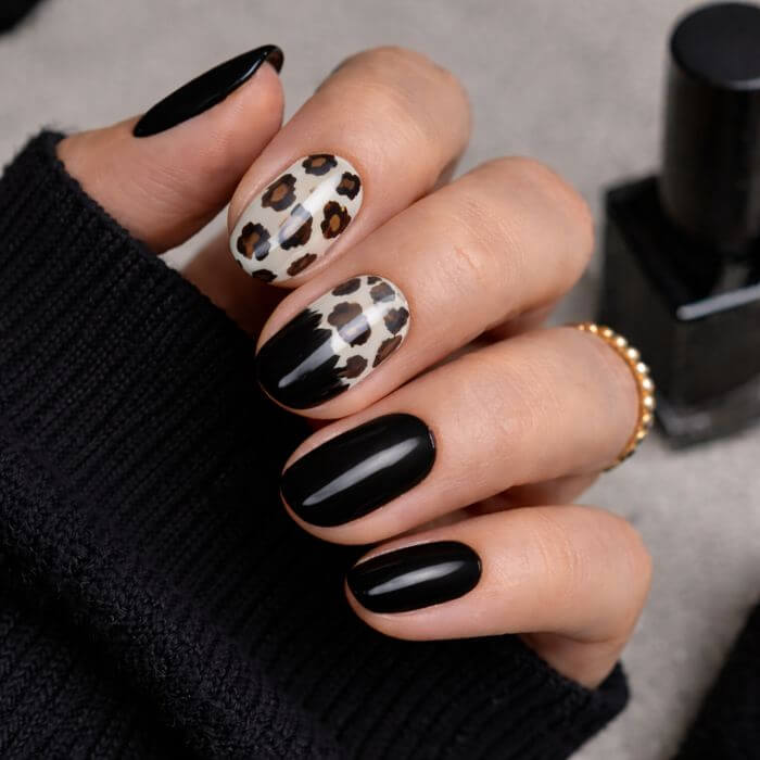 Les imprimés animaliers version noir (léopard, zèbre) apportent du caractère à votre manucure.